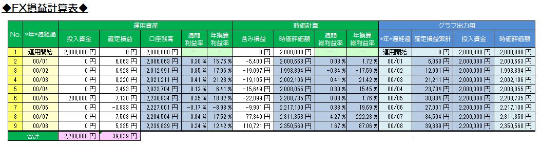 今週はどんどんレートが上昇していったので、ショートトラップの確定益は少なかったですが、含み益を出しつつ、ツナギ売りを仕掛けることでうねりを狙い通りに取りにいけてて、売買法として安定した感じを受けました。