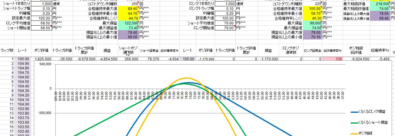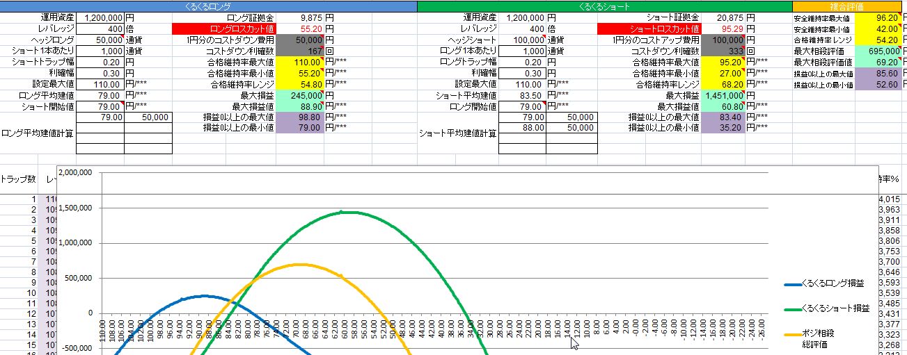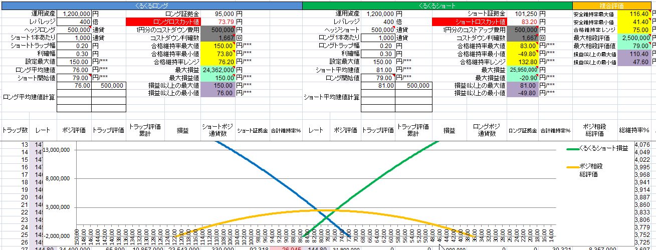 まずは、くるくる試算表の改良です。レートがくるくるロング側とくるくるショート側でずれないように片方だけ入力するようにしました。